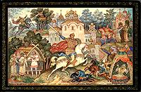 The subject is based on the Russian bylina(ancient story)"Three Trips of Ilya Muromets".