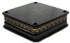 The work is called "Azure Summer". It is painted in subdued yellow, red and green tones and richly detailed with gold paints. The lid is decorated with beautiful gold floral patterns dominated by a blossom of a flower in each corner together with a pretty bird. Intricate gold ornamentation wraps around the box's sides.