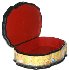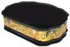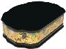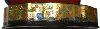 The sides of the box are coverd with gold leaves, over which an artist has painted a composition/ornament full of eggs, trees and plants!