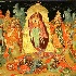 The scene is a traditional Palekh composition, with a nice landscape extending throughout the scene, and a large number of characters placed around the scene. The viewer's eye is drawn to the center, where the Shamakha Queen stands inside her tent, and then around the edges of the scene to the other groups of characters. The palette for this work is especially attractive. The artist uses an attractive combination of warmer colors for the main details, and pleasant blue and green for the background. Almost all elements of the composition are touched with the intricate detail of gold. The artist's use of gold is so fine and masterful that is deserves this special mention.