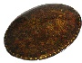 This brooch shows several flowers painted with a thin brush in gold against the beautiful background painted also in gold paint with the addition of brown paints. The edges of the brooch are decorated with elegant gold pattern that consists of gold beads of different size. The backside of the brooch covered with black lacquer has a big pin to be attached to your clothes. This stylish brooch will perfectly decorate your costume! The work is signed with the artist's name, the village of Palekh and the year of 2004.