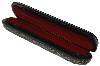 The box is made out of paper-mache. Black lacquer covers the exterior and red lacquer covers the interior of the box. The lid is hinged from the top of the scenes, and the box rests on a flat bottom. The work is signed with the artist's name, Palekh, and the year of 2009.