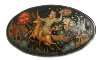 Description: This beautiful brooch was painted by a talented artist, Peskova Irina. It shows Ivan on a hump-backed pony from fairy-tale of "A little hump-backed horse". Ivan is riding a hump-backed pony and has a feather of a fire-bird in his hand.