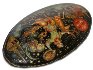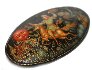 The edges of the brooch are decorated with elegant gold pattern that consists of gold beads. The backside of the brooch covered with black lacquer has a big pin to be attached to your clothes.