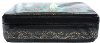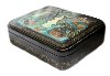 The box is constructed from paper-mache. Black lacquer is used to paint the exterior of the box while red lacquer completes the interior of the work.