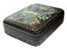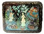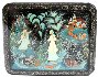 The work is a good example of intricate Palekh art. Each minute element of the composition including various plants, animals and birds, is elaborately detailed with brilliant gold paint. Silver paint is used to create a sparkle of the snow!