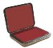 The box is made out of paper-mache. Black lacquer covers the exterior and red lacquer covers the interior of the box. The lid is hinged from the top of the composition and the box rests flat. Signed with the name of the artist, the village of Palekh and the year of 2010.