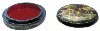 The box is made out of paper-mache. The interior of the box is red, while the exterior is covered with back lacquer. The lid is not hinged, and the box rests on a flat bottom.
