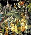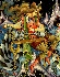 Gold and aluminum are used to detail and highlight virtually every portion of the composition. This enhances the already lustrous palette and makes the scene sparkle from within.