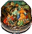 Description: Roman Chibisov is a talented Palekh artist whose popularity grows with each his new box. His brilliantly painted works are always very bright as he likes to decorate them with the gold metal leaf inlay. This is one more his splendid creation that is a true work of art!