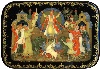 Description: This traditional Palekh box is a creation of Vladimir Bogdanov (born 1956) whose favorite themes to depict are folklore and genre scenes. This talented artist is a participant of various exhibitions since 1985. His works are kept in the Art Fund of Russian Federation.