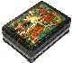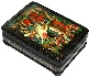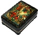 Description: This masterful creation was composed by the thoroughly talented Yuriy Pozhidayev from the village of Palekh. His pieces have a unique elegance about them that captures the medieval essence of the tales he frequently uses as subject matter. Color and ornamentation work wonders when applied by an experienced hand. This piece is a great example of that.