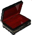 The box is made out of paper-mache. Black lacquer covers the exterior and red lacquer covers the interior of the box. The lid is hinged at the left, and the box rests on four legs. The work is signed with the artist's name, Palekh, and the year of 2006.