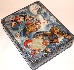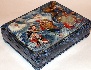 The scene is framed with a gold line. The box exterior imitates the coloring of blue marble (blue veins and blurry spots are scattered against the black lacquered surface). The interior is traditionally red.