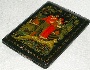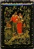 Black lacquer covers the exterior and red lacquer covers the interior of the work. The lid is hinged from the top of the scenes, and the box rests on a flat bottom. The box can be shut toughly by means of a special device; when you push on the small metal device the box can be opened automatically. The work is signed with the artist's name, Palekh and the year of 1970.