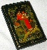 Description: This antique box was painted by Liliya Zverkova in 1970. She was born on the 19th of March, 1941 in the town of Prokopyevsk, the Kemerovsk Region. Member of the Union of Artists since 1974. During 1962-1967 she studied in the Palekh Art School. Her teachers were I. Vakurov and A. Kotukhin. Since 1967 she worked in the Palekh Art Workshops. Besides the lacquer miniature art, this artist worked in the sphere of jeweller's art. Participant of various exhibitions since 1969. Her works are kept in the Museum of Palekh Art, the All-Russia Museum of Decorative and Applied Art, the Ivanovo Regional Art Museum, and the Art Fund of Russia. Her major works are “In the Forest”, “Mushroom Time” , “Danko”, “Peddlers”, “Bast Shoes”, “My Village”, “Gathering Mushrooms”, “Noon”,