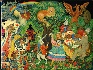 Description: The exceptional talent of Vera Smirnova is used to paint this scene from Lewis Carroll's classic tale "Alice in Wonderland". In the middle of the composition we can see Alice holding a flamingo that is used as a mallet in the game of croquet. Above her head the Cheshire Cat lies on a branch of the big tree. From the right of Alice the artist has drawn the tea party in the Hat's house. On the left of the Cheshire Cat we can see the Caterpillar who smokes the hookah sitting on the big mushroom. The left upper corner shows the magnificent palace of the Wonderland while the right upper corner depicts the Mock Turtle and the Gryphon. In the left bottom corner we can see the violent Queen of Hearts who orders to chop off the gardeners' heads to her soldiers. On the left of Alice the artist has drawn the White Rabbit who hastens to meet with the Duchess.