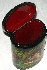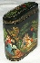 The box is constructed from papier-mache. Black lacquer is used to paint the exterior of the box while red lacquer completes the interior.The exterior is decorated with intricate gaold and aluminum patterns.The lid is hinged, and
