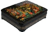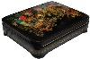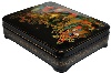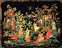 Description: This luxuriant Palekh box has been painted by the famous painter, Nina Bogachyova. She was born in 1941 in the village of Ilinskaya in Ivanovo region, 300 kilometers northeast of Moscow. She currently resides in Palekh, as a well-established Palekh artist. The themes of her works are for the most part folklore and genre scenes.