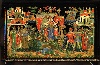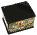 The reverse side of the box shows several scenes from “The Tale of Tsar the Soothsayer”. There are thirty two versions of this tale. People living in Russia, Europe, Asia and even America know the plot of this tale. We can remember such Russian versions of this tale as “Vanyusha”, “Yelena the Wise”, “Tsar the Practitioner of Black Magic”. The tale tells about the bogatyr Ivan who seeks in marriage the daughter of Tsar the Soothsayer (we can see this scene in the foreground of the reverse side). Tsar the Soothsayer is a keeper of the magic book (he is depicted in the center of the composition reading his book). When he opens his book he can find out the answer of any question. Tsar the Soothsayer lets Ivan marry his daughter only if he manages to hide from him. Ivan accepts his proposal and hides in the garden behind the big tree. This procedure repeats two times. Every time Tsar the Soothsayer finds Ivan because he finds out the place where Ivan hides in his magic book. The third time Ivan comes to the big oak near the sea and saves nestlings of the Bird Mogul (this episode is depicted in right upper corner of the composition). The grateful bird presents Ivan three feathers. Ivan must touch the books with these feathers to destroy the magic. Ivan makes this procedure, hides again in the garden and Tsar the Soothsayer can't find him. In the end of the tale Ivan marries the daughter of Tsar the Soothsayer and after his death becomes the ruler of the kingdom (this scene is painted in the left part of the composition.