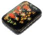 Description: This festive Palekh box has been painted by the experienced painter, Nina Bogacheova. She was born in 1941 in the village of Ilinskaya in Ivanovo region, 300 kilometers northeast of Moscow. She currently resides in Palekh, as a well-established Palekh artist.