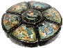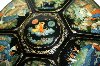 A broad spectrum of colors is used to create this highly detailed world. The artist leaves the sky black, which is one of Palekh's stylistic trademarks, but it does not mean that the scenes are taking place at night. Gold and aluminum paint is used to enhance life and brightness of each scene.