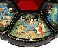 Bogdanov has done a tremendous work, as the box features nine masterfully painted scenes. It has extensive paintings around the body, and one composition on the lid's top.
