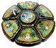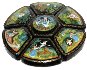 It depicts a scene from the Russian fairy-tale "Geese and Swans". The sections of the lid shows the moment of the fairy-tale when the wicked birds Geese and Swans kidnapped the little boy by the order of Baba-Yaga. Afterwards the boy's sister, Alyonushka, sets out in search of her brother. She finds him in Baba-Yaga's house and the children successfully escape from there. The wicked birds Geese and Swans start to pursuit them.
