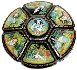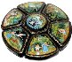 Green tones are dominated here. Each element of the composition is detailed using gold or aluminum paint. The use of gold and aluminum is done with great skill and attention to detail!