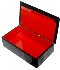 The box is made out of paper-mache. Black lacquer covers the exterior and red lacquer covers the interior of the box. The lid is hinged at the top of the scene, and the box rests on flat bottom. It is signed with the name of the artist, the village of Palekh, and a year.