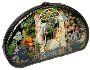 Warm green tones of tempera colors are used to paint the green park and a river on the back side. Gold and silver detailing outlines, highlights, and provides light in every element of the composition. The use of metallic paint is executed with precision and with an unbelievably steady hand that is able to paint with razor like thinness.
