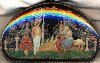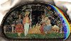 Each scene is filled with a great amount of minor details that help to imagine vividly the episodes of the novel. Gold and aluminum are used to detail and highlight virtually every portion of the composition. This enhances the already lustrous palette and makes the scene sparkle from within. Gold is also used to frame the painting with attractive patterns.