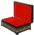 The box is constructed from paper-mache. Black lacquer is used to paint the exterior of the piece while red lacquer completes the interior of the work. The lid is hinged from the top, and the box rests on four legs. The artist wrote her name, the year of 2012 and the village name of Palekh along the bottom of the composition in gold paint.