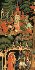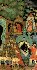 The artist fills the composition with lots of action and detail. Each scene is enhanced with gold metallic paint that adds a rich brightness to the work.