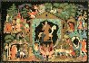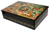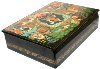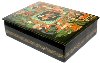 Description: This box was painted in a dual effort by the relative team of Brovkina Natalie and her daughter Gvozdkova Nina. The work is called "Lukomorye" that can be translated into English as "By the Ocean". In the Russian folklore "Lukomorye" is also known as the fairy land inhabited by various fairy-tale characters (here we can remember Pushkin's introduction to the popular poem "Ruslan and Lyudmila" that begins with the following line: "An oak tree greening by the ocean; A golden chain about it wound..."