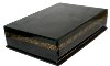 The box's exterior is decorated with intricate gold patterns accented with silver paint on the box's sides.