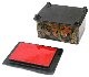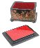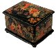 The box is constructed out of paper-mache. Black lacquer is used to paint the exterior of the box and red lacquer is used to paint the interior of the box. The lid is not hinged , and the box rests on four legs. The work is signed with the artist's name, the titles on each side, Palekh and the year of 2014.