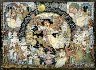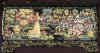 The scene painted in the right part of the composition shows how she managed to realize it. Marya offered these three magic things to the Princess (she is depicted leaning out of the palace's window) asking her to let see Finist the Falcon. The Princess agreed and Marya came into her fiance's room. She found him sleeping like a log and tried to awake him. Only when she began crying bitterly Finist the Falcon awoke. He recognized his fiancee, kissed and embraced her tenderly. Since that time this couple never parted. In the middle of the composition the artist paints the reunion of Marya and Finist the Falcon.