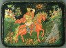 This subject (originally painted by Victor Vasnetsov in 1882) can be found in Russian State Museum of St.Petersburg. Usually only Fedoskino artists who are working with oil paints were making variations of realistic paintings.
