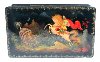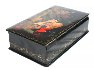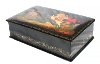 The painting is framed with gold pattern on the lid. Precise and fine gold ornamentation wraps around the sides of the box.