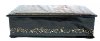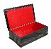 The box is constructed from paper-mache. Black lacquer is used to paint the exterior of the piece while red lacquer completes the interior of the work.