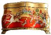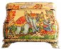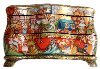 Here the artist has chosen to depict a Circus performance! The painting is MADE over the real gold. It was glued as a sheet on the surface of the box and later on the painting was made over it.