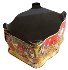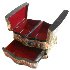 The box is constructed from paper-mache. Black lacquer is used to paint the exterior of the box while red lacquer completes the interior of the work. The box has hinges from the sides of the casket and rests on four legs.