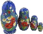Description: This wooden nestling doll was made in the village of Abramtsevo. It includes three dolls (four in the whole). The dolls feature pretty girls dressed in blue costumes richly decorated with flowers. Bright red poppies and white daisies look very beautifully against the blue background. The kokoshnik (head-dress) that decorates the dolls' heads is painted with gold paints. The work is signed with the artist's initials: S.L.