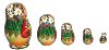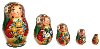 It shows girl with a flower bouquete. Matrioshka is consist of five pieces and is made of wood. Signed by the artist.